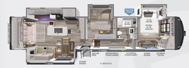 Type d'essence : Aucun Longueur : 42 pi. Coucher : 8 personnes à coucher et plus Poids : 15 064 Lbs Foyer : inclus Cuisinette extérieure : inclus Ilôt central : inclus Pneus américain : inclus Caméra de recul : inclus Réfrigérateur 12 Volts : inclus Tables et chaises : inclus Sofa lit : inclus Fauteuil style théatre : inclus Télévision : inclus Jante aluminium : inclus Mise à niveau auto nivelant : inclus Lit queen : inclus Front cap moulé : inclus Échelle arrière : inclus Chambre enfant fermée : inclus Préparation laveuse secheuse : inclus Deuxième A/C 13500BTU : inclus Télévision dans la chambre : inclus Chauffe eau instantanée : inclus 50 AMP : inclus Douchette extérieur : inclus Auvent : inclus Lits superposés : inclus Troisième A/C 13 500 BTU : inclus Radio bluetooth : inclus Antenne TV : inclus Chauffage 35 000 BTU : inclus Hauts-parleurs extérieurs : inclus Fourneau : inclus Poêle 3 ronds : inclus Micro-onde : inclus Système hydraulique : inclus air climatisé 18K BTU : inclus Panneaux solaire 370W : inclus |