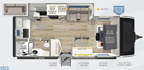 Poids : 7 075 Lbs Coucher : 2 personnes à coucher Longueur : 26 pi. Type d'essence : Aucun Foyer : inclus Réfrigérateur 12 Volts : inclus Tables et chaises : inclus Fauteuil style théatre : inclus Construction Azdel : inclus Lit king : inclus Échelle arrière : inclus Chauffe eau instantanée : inclus 50 AMP : inclus Pattes électrique : inclus Inverter : inclus Support sur le toit : inclus Douche intérieur : inclus Toilette avec réservoir : inclus Radio bluetooth : inclus Antenne TV : inclus Chauffage 35 000 BTU : inclus Poêle 3 ronds : inclus Éclairage DEL : inclus Micro-onde : inclus Panneau Solaire 200W : inclus Construction aluminium : inclus air climatisé 18K BTU : inclus |