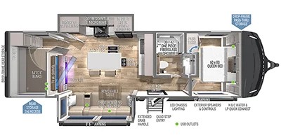 Brinkley Z295 2024 Alliez confort, espace et technologie avec le Brinkley Z295 2024, idéal pour les familles et les voyageurs exigeants. Profitez d’un lit queen, d’une chambre enfant fermée et d’un fauteuil style théâtre pour un espace de vie spacieux et confortable. La cuisine complète avec réfrigérateur 12V, fourneau, poêle 3 ronds, micro-onde et îlot central facilite la préparation des repas, tandis que le chauffe-eau instantané et l’air climatisé 15 000 BTU assurent un confort optimal en toute saison. Pensé pour le divertissement et la vie en plein air, cette unité est équipée de panneaux solaires, auvent, antenne TV, hauts-parleurs extérieurs et télévision dans la chambre. Les fenêtres doubles, l’échelle arrière, le front cap moulé et les pneus américains garantissent sécurité et durabilité, tandis que le stabilisateur électrique offre praticité et stabilité. Le Brinkley Z295 2024 combine luxe, autonomie et fonctionnalités complètes pour des escapades mémorables et sans compromis.