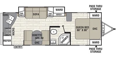 Type d'essence : Aucun Coucher : 4 personnes à coucher Poids : 4 661 Lbs Longueur : 28 pi. Air climatisé 13500BTU : inclus Banquette : inclus Sofa lit : inclus Télévision : inclus Jante aluminium : inclus Lit queen : inclus Chauffe-eau 6 gallons : inclus 30AMP : inclus Réfrigérateur gaz/électrique : inclus Antenne TV : inclus Hauts-parleurs extérieurs : inclus Fourneau : inclus Lecteur AM/FM/CD/DVD : inclus Poêle 3 ronds : inclus Micro-onde : inclus |
