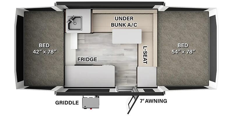 Rockwood 1640FT 2025 Le Rockwood 1640FT 2025 est une unité compacte et bien équipée, idéale pour les escapades en famille ou entre amis. Elle combine confort, praticité et autonomie pour des séjours agréables : Espaces de vie : chambre principale avec lit queen, lit double et sofa-lit pour accueillir confortablement plusieurs personnes. Cuisine et repas : réfrigérateur 12 Volts et support pour BBQ pour des repas faciles à préparer à l’intérieur comme à l’extérieur. Confort et commodités : air climatisé 15 000 BTU, chauffage 20 000 BTU, chauffe-eau 6 gallons, 30 AMP, pattes manuelles, douchette extérieure, auvent et toit électrique pour un séjour agréable en toutes saisons. Équipements modernes : Fantastic Fan et éclairage DEL pour plus de confort et de fonctionnalité. Le Rockwood 1640FT 2025 est parfait pour ceux qui recherchent une unité compacte, fonctionnelle et bien équipée pour des aventures mémorables.